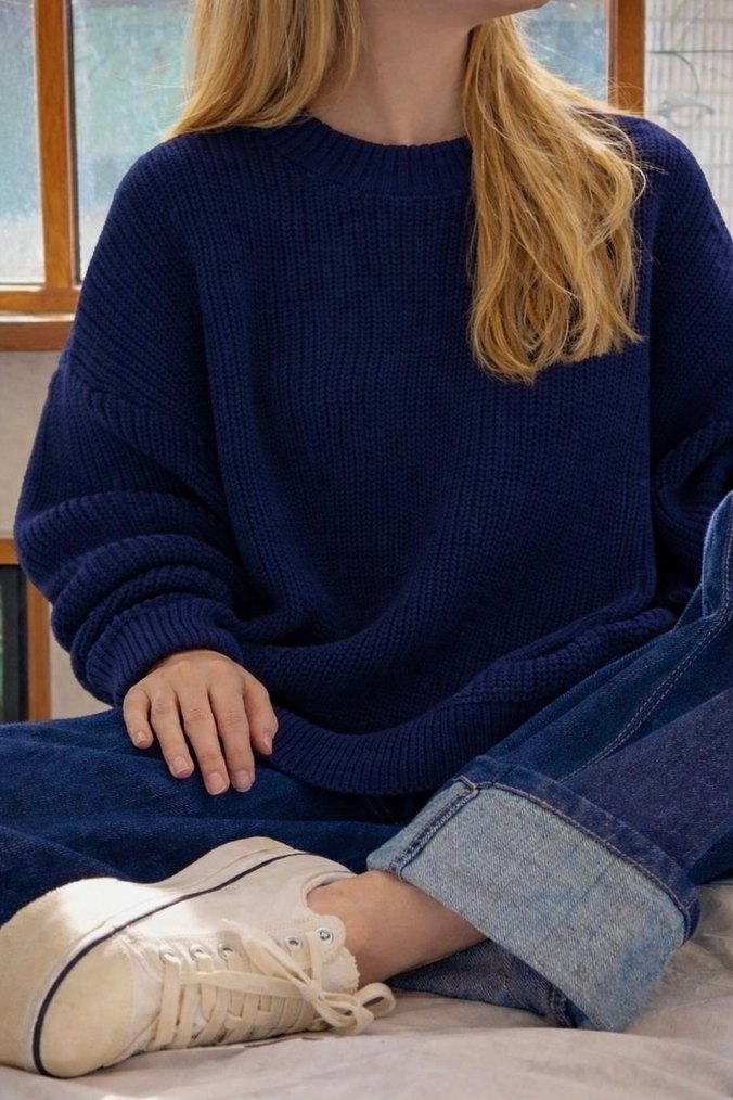 Bisiklet Yaka Lacivert Oversize Triko Kazak