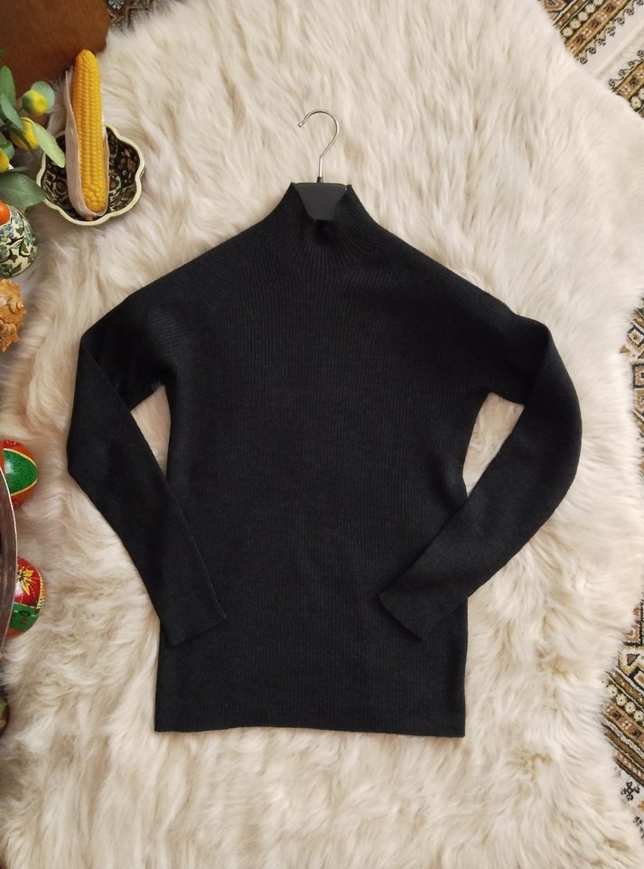 BİSSE marka %50 yün, %50 akrilik koyu gri uzun kollu ve boğazlı kazak. Çok az giyildi, tertemizdir. Hem özel günlerde, hem de günlük olarak kış günlerinde kombinlerinize uyum sağlayacak şık ve sade bir giysidir. Bedeni yok, esnek yapısı sayesinde birçok bedene uyum sağlar ama bence en çok S ve M bedenlere yakışır. Ölçülerini mezura ile fotoğraflayıp yükledim. Sadece PTT ile gönderebiliyorum. İade yoktur, lütfen buna göre sipariş verin. Keyifli alışverişler. #öneri #beğeni #teklif #yorum #takip
