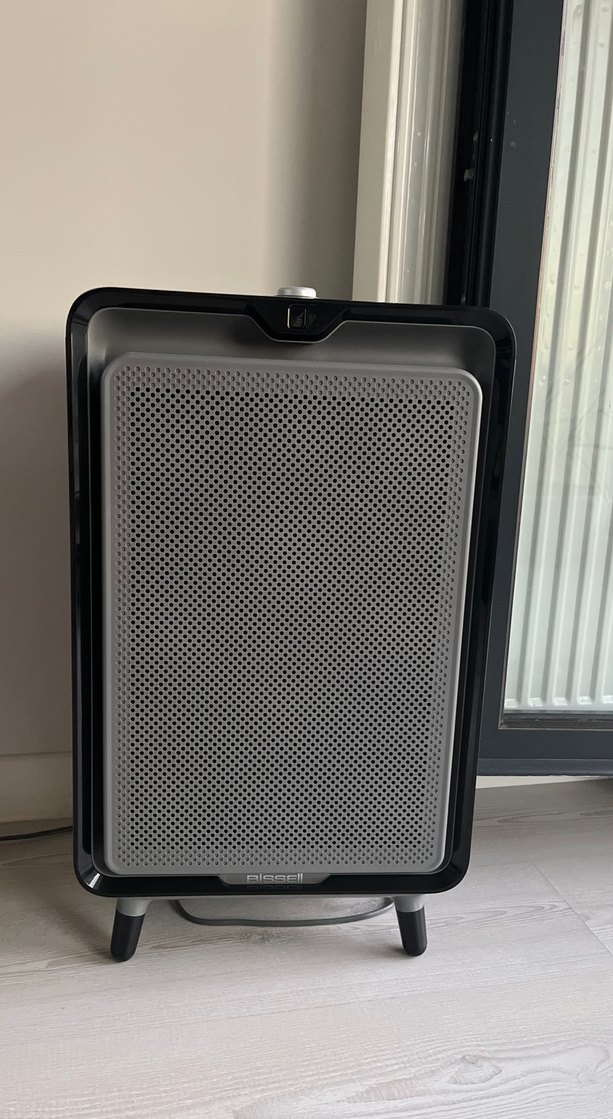 Gri renkte, modern tasarımlı hava temizleyici, iç mekan hava kalitesini artırır Bissell marka çok az kullanılmamış