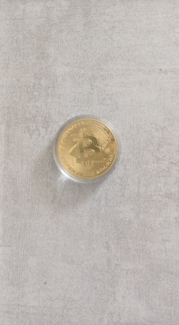 Bitcoin tasarımlı metal hatıra parası, şeffaf koruyucu kutuda. Koleksiyon veya hediye için uygundur.