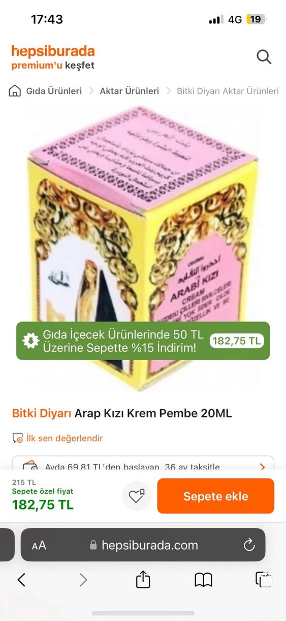 Bitki Diyarı markasına ait, 20ML hacminde Arap Kızı krem. Osmanlı Türkçesi yazılı dekoratif kutuda, pembe renkte bir kremdir.
