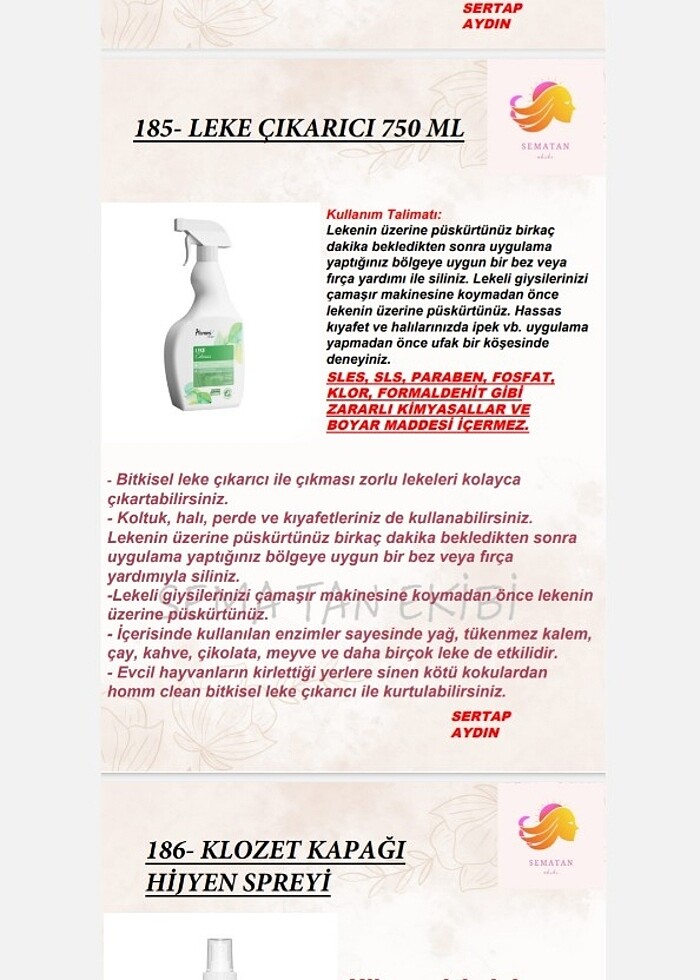 Homm bitkisel leke çıkarıcı sprey şu ana kadar denediğim her lekeyi çıkardı benim halım beyaz çay döküldü nar damladı hepsini çıkardı. Eşim sanayide çalışıyor onun kıyafetlerindeki yağ lekelerine kadar çıkardı