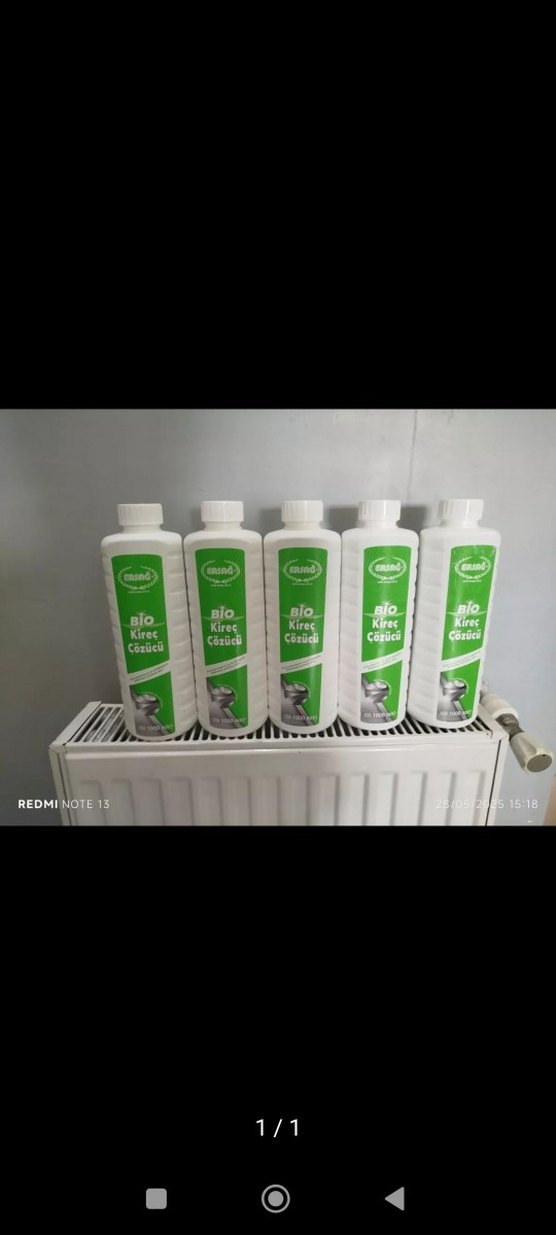 Biyo kireç çözücü, kireç birikintilerini etkili şekilde çözen temizlik ürünüdür. Beyaz şişede, yeşil etiketlidir.