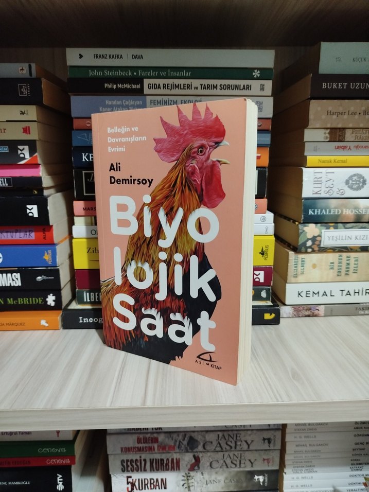 Ali Demirsoy'un "Biyo lojik Saat" kitabı, biyolojik ritimler ve davranışların evrimini inceliyor. Kapakta renkli bir horoz resmi bulunuyor.