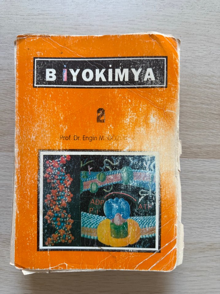 Prof. Dr. Engin M. Özüt'ün biyokimya konularını detaylı görsellerle anlattığı "Biyokimya" kitabı, sık kullanılmış yıpranmış kapaklıdır.
