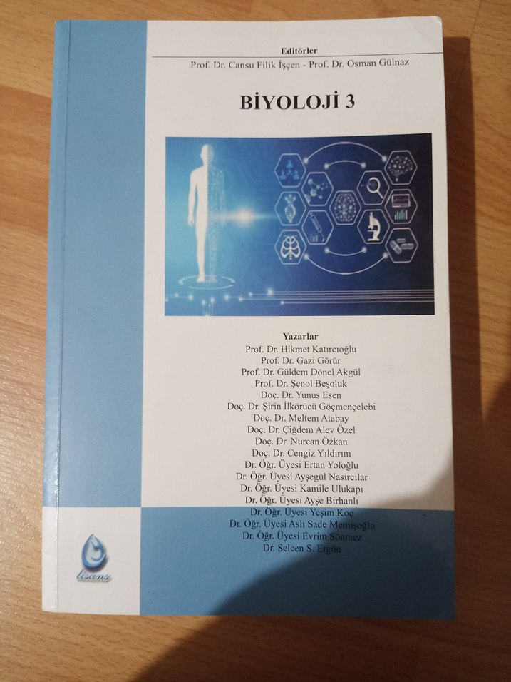Biyoloji 3, Prof. Dr. Cansu Filik İçen ve Prof. Dr. Osman Gülnaz. Resimde belirttiğim gibi bazı sayfalarını altı çizili onun dışında temiz.