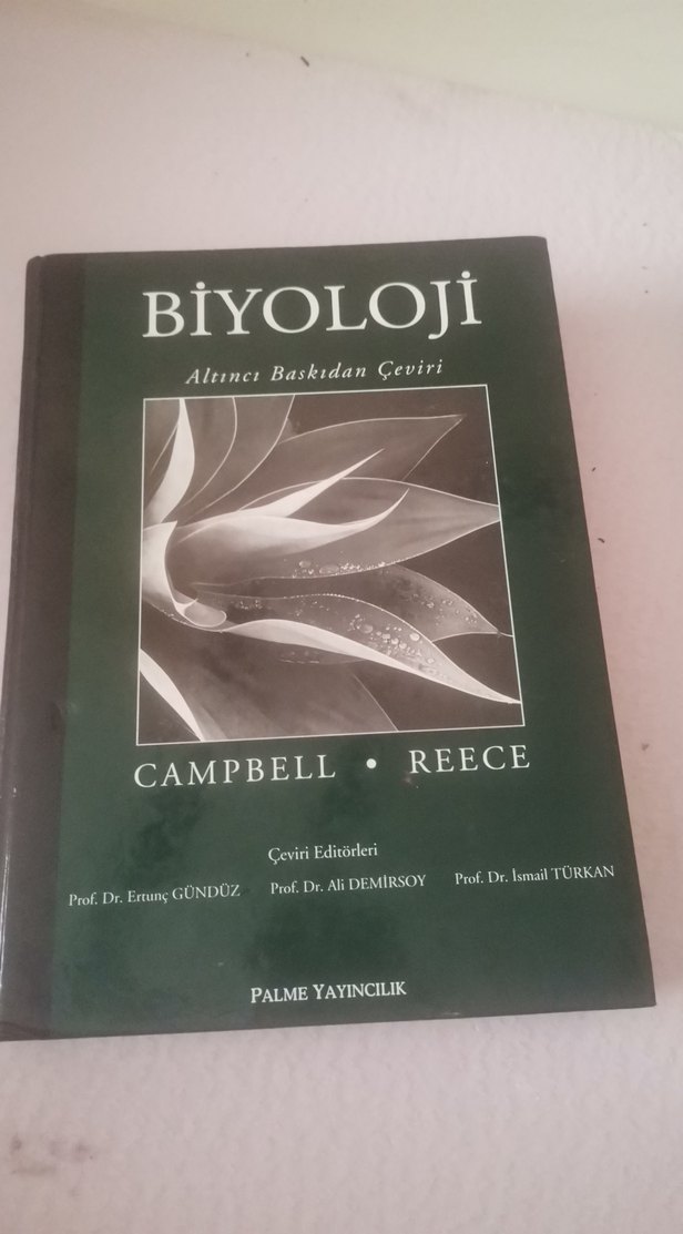 Campbell ve Reece'nin altıncı baskıdan çevrilen biyoloji kitabı. Editörler Prof. Dr. Ertunç Gündüz, Prof. Dr. Ali Demirsoy, Prof. Dr. İsmail Türkan. 2006 baskı