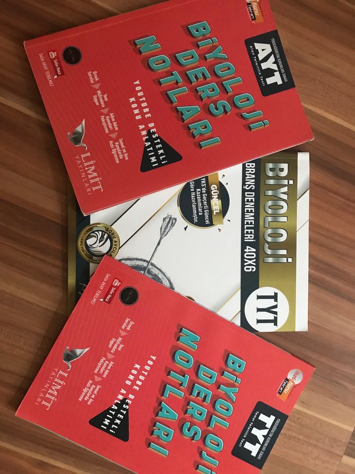 Denemede ilk 14 denem çözülü ders notlar üzerinde ise küçük notlar var aytsinin bi sayfasında küçük bir yırtık var tytsinin arkasında bulunan yazma kısmı dolu