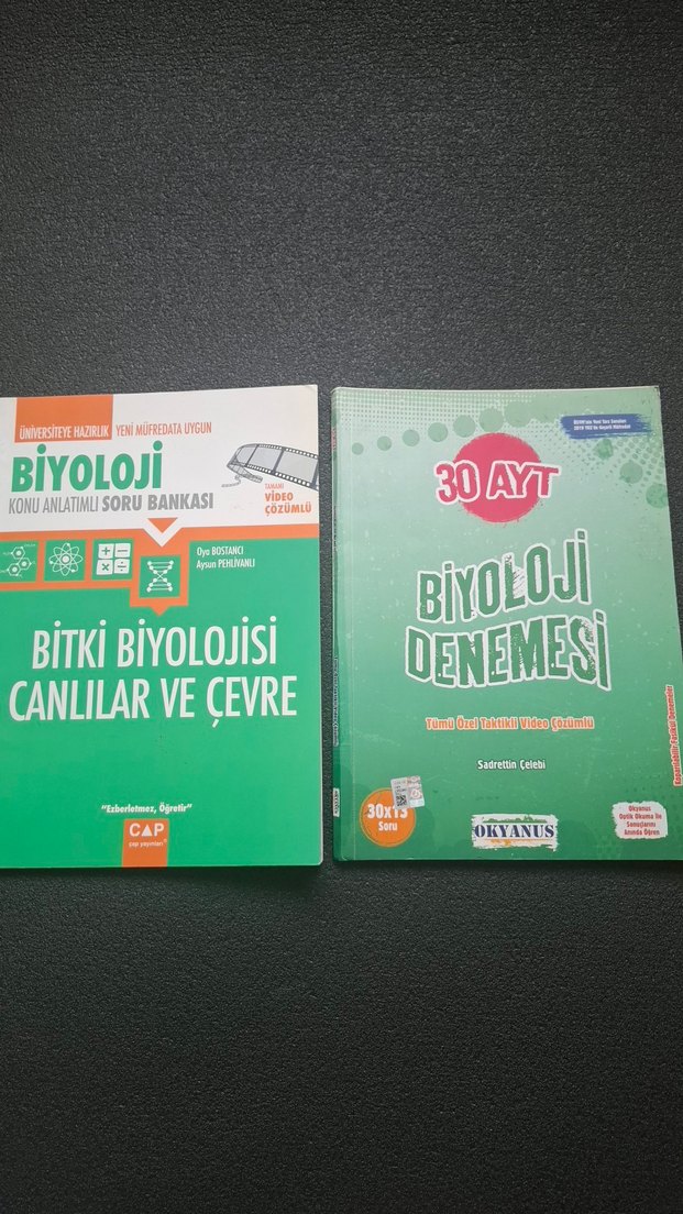 Bitki biyolojisi, canlılar ve çevre konularını içeren video çözümlü soru bankası ve 30 AYT biyoloji denemesi kitapları. Ikiside hiç çözülmemiştir.