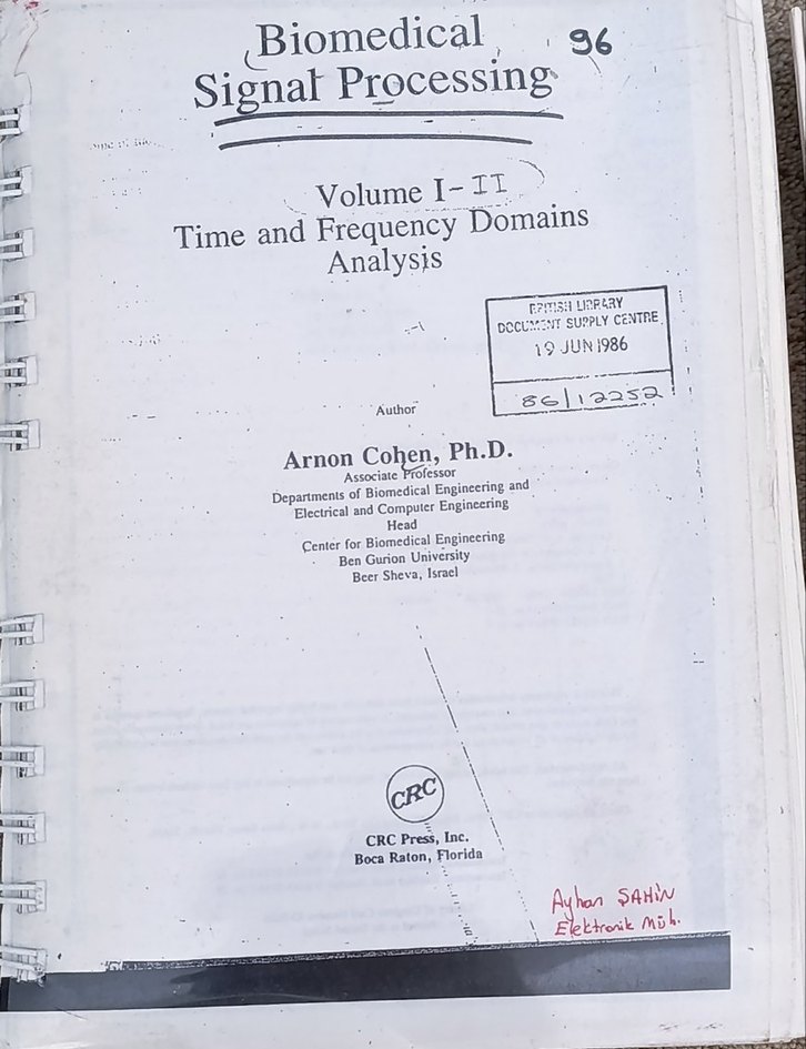 Arnon Cohen, Ph.D. tarafından yazılan bu kitap biyomedikal sinyal işlemede zaman ve frekans alanı analizlerini ele alıyor.