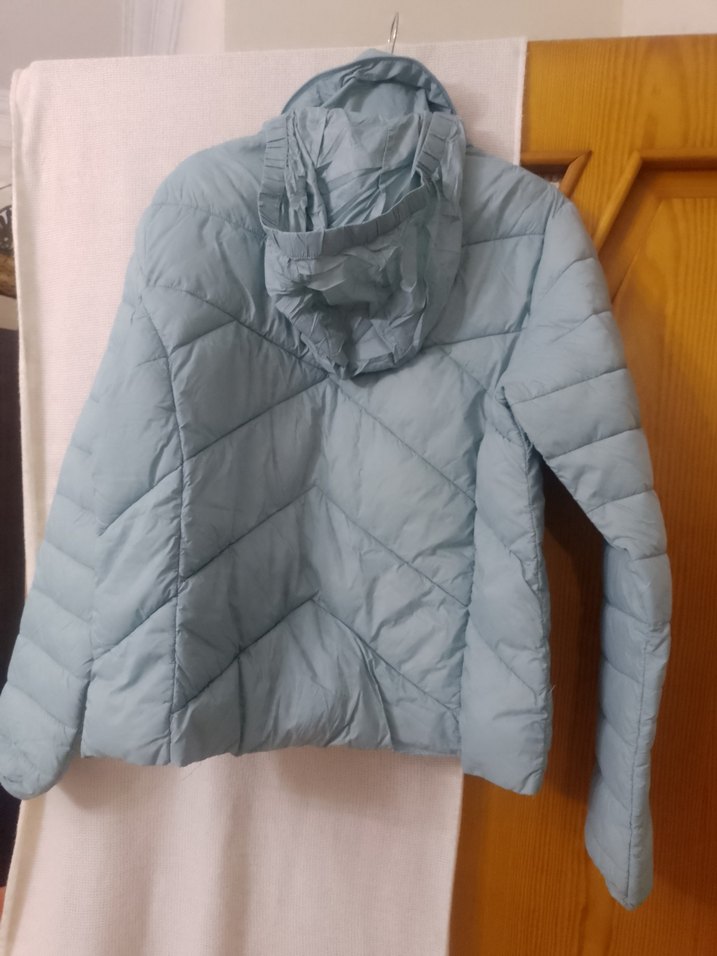 Biz mavi renkli, kapitone desenli, yüksek yakalı, fermuarlı kadın kışlık mont. Sentetik yumuşak kumaştan, rahat ve günlük sokak stili için uygun midi boyda, uzun kollu mont.