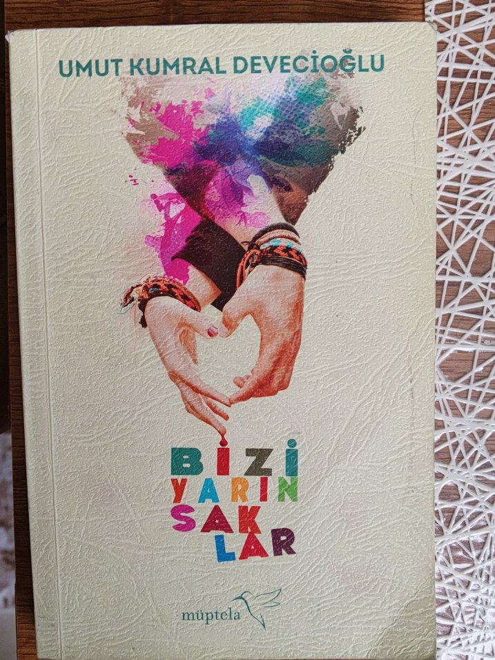 Umut Kumral Devecioğlu'nun "Bizi Yarın Saklar" romanı, umut ve bağ temasını işler. Kapakta renkli eller kalp şekli oluşturuyor.
