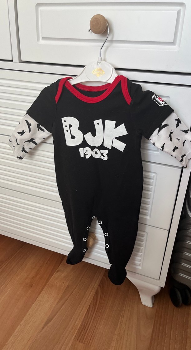 Siyah renkli, uzun kollu, baskılı desenli, düğmeli bebek tulumu. Yumuşak ve sıcak tutan kumaştan, bisiklet yakalı ve rock punk tarzında. Üzerinde 'BJK 1903' yazısı bulunur.Orjinaldir