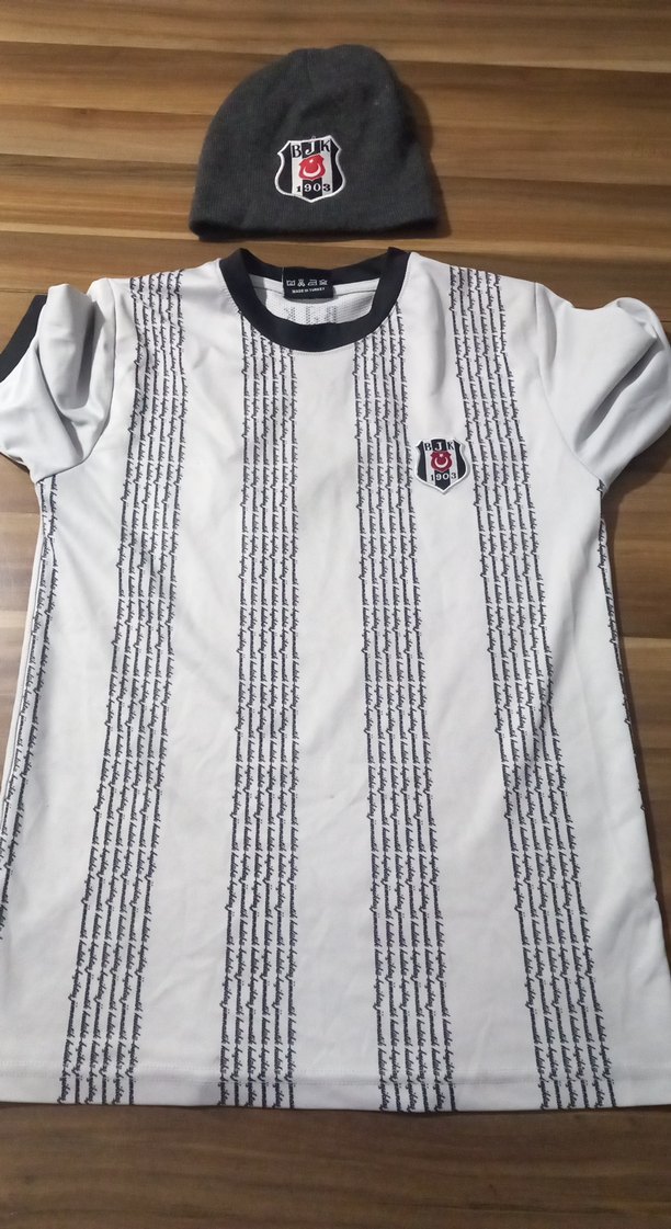 Bu erkek tişörtü, kısa kollu, bisiklet yaka ve dikey baskılı çizgilerle plise detayına sahiptir. Beyaz ve gri tonlarda sentetik kumaştan yapılmıştır. ⚽