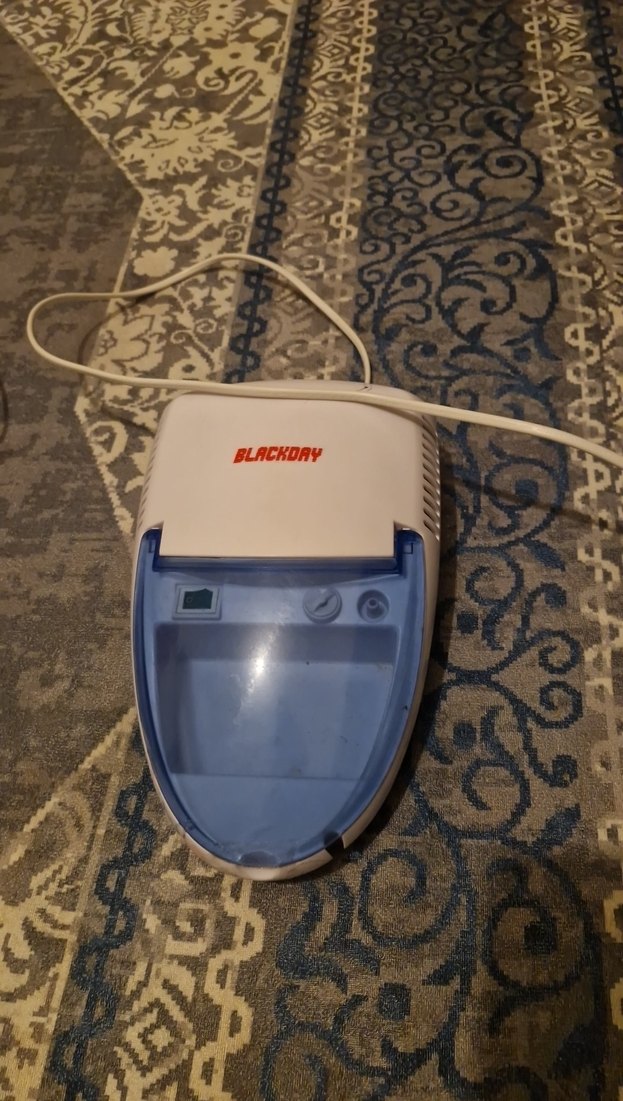 Blackday markalı beyaz kişisel bakım cihazı, mavi saydam kapak ve temel kontrol düğmelerine sahiptir. Güç kablosu ile kullanılır. ⚪