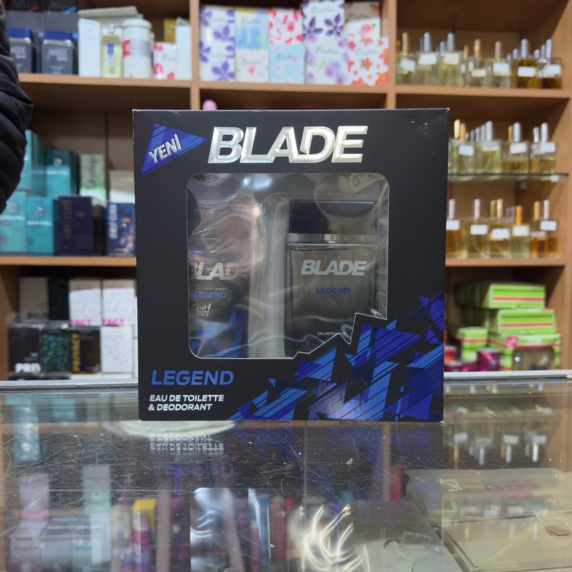 Blade Legend Edt 100ml + Deo SET. Ürün görseldeki gibi kendi özel set kutusunda satılmaktadır. Ürün orijinaldir, kullanılmamıştır ve sıfırdır