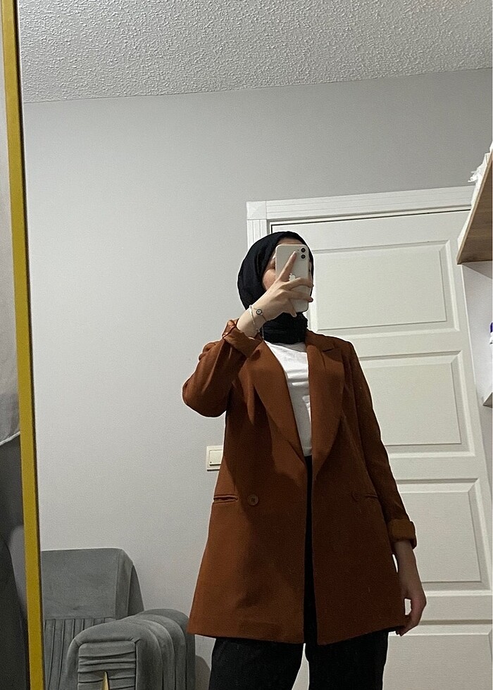 Hiç kullanılmadı. Kremit rengi ceket iki cebi mevcut. Omuzları vatkalı.