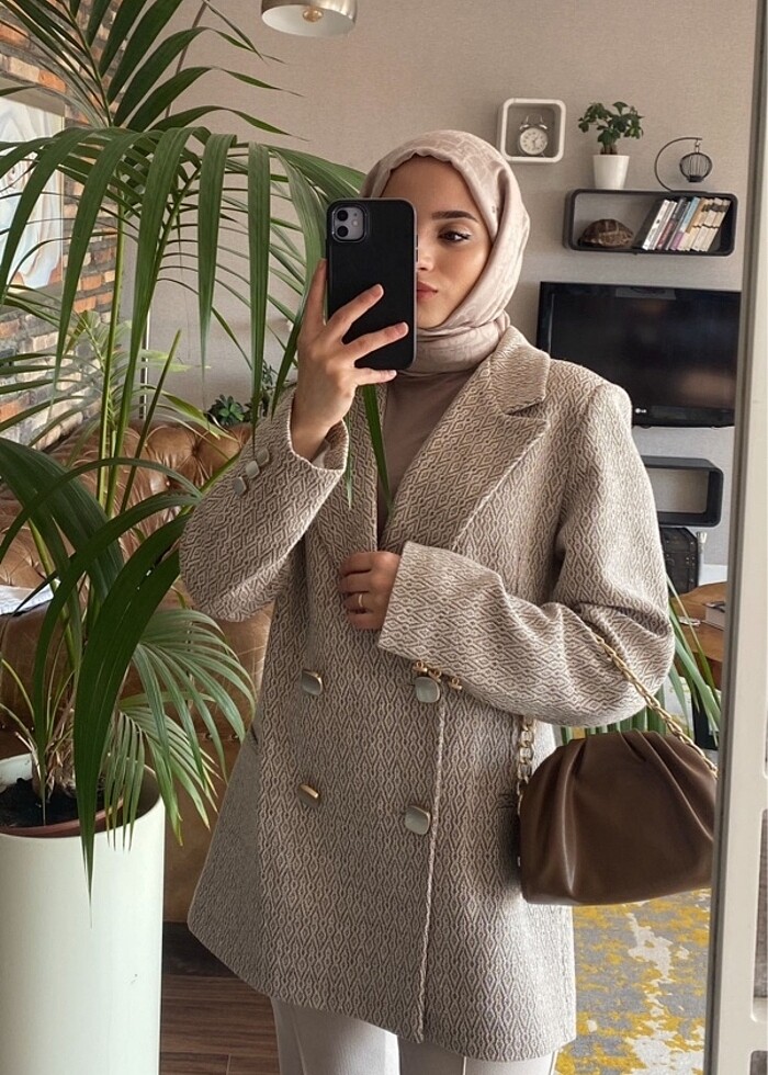 Kendinden desenli blazer ceket. Etiketinde M beden yazıyor ama s beden giyen kişiler için dr uygun. Bir iki kez giyilmiştir.