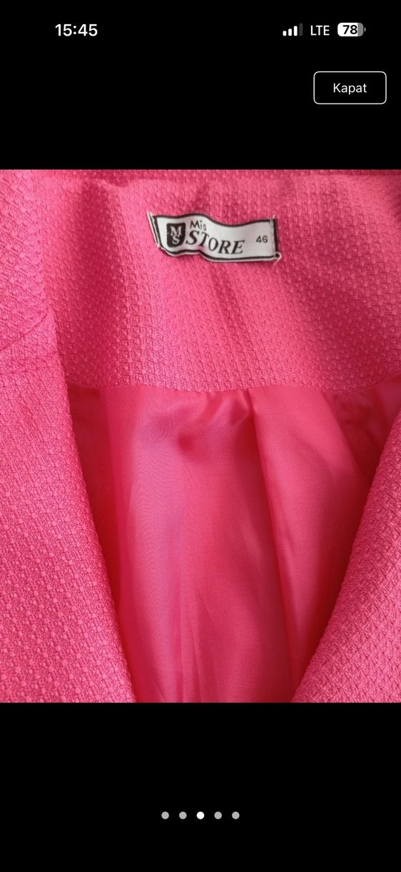 Canlı pembe tonlarında, 46 yazıyor ama 36-38 beden dar kalıp tertemizdir