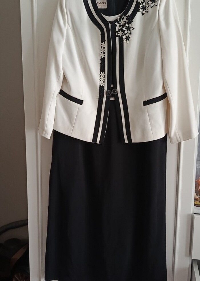 Blazer ceketli çiçek detaylı krem- siyah özel gün takımı