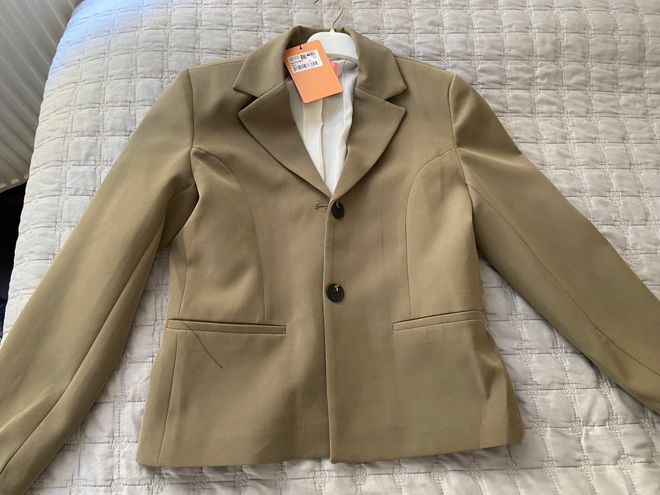 Haki renkli, düğmeli, yaka detaylı kadın blazer ceket. Keten kumaştan, uzun kollu ve normal kesimdir. İş ortamına uygun sade tasarımda midi boy ceket. Kumaş pantolon ile takımdır.
