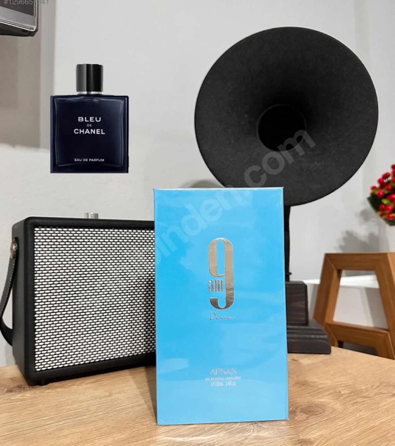 Bleu Chanel erkek parfümü, koyu mavi şişesi ve minimalist tasarımıyla dikkat çeker. Modern ve özgün bir koku sunar. Orjinal ürün Afnan 9a.m Dive