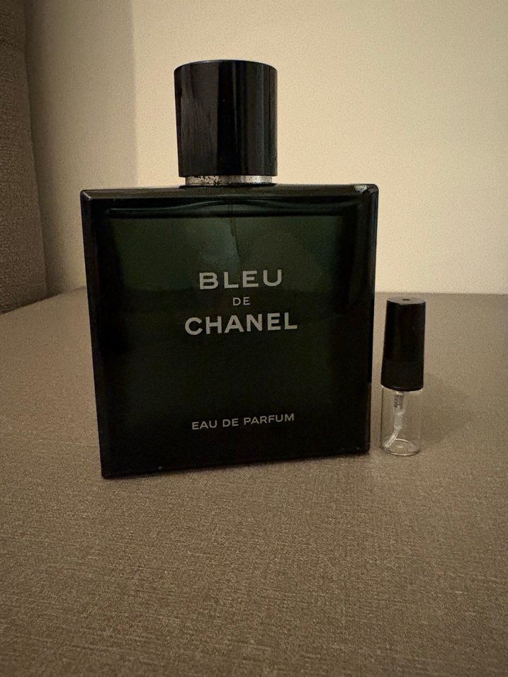 3ml bleu de Chanel Eau de Parfum erkekler için koyu mavi şişede, Parisli karşı kültür tarzıyla canlı bir koku sunar.