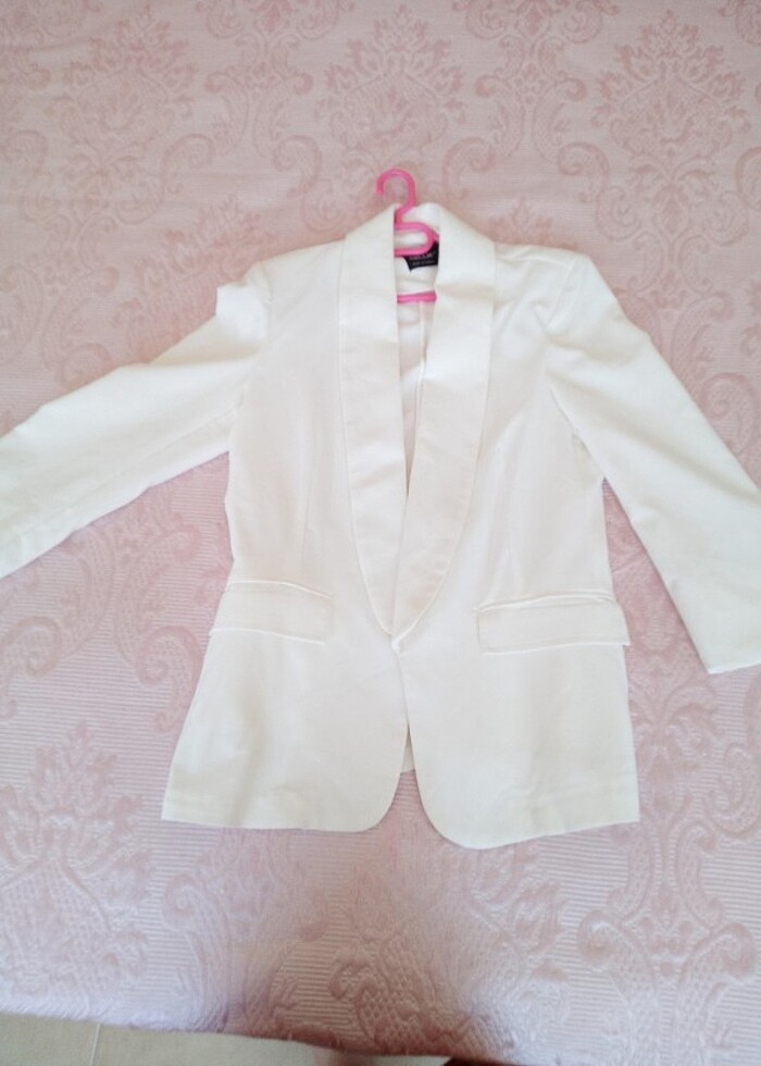Beyaz bleyzir ceket .hiç giyilmedi.onde cep detayları var