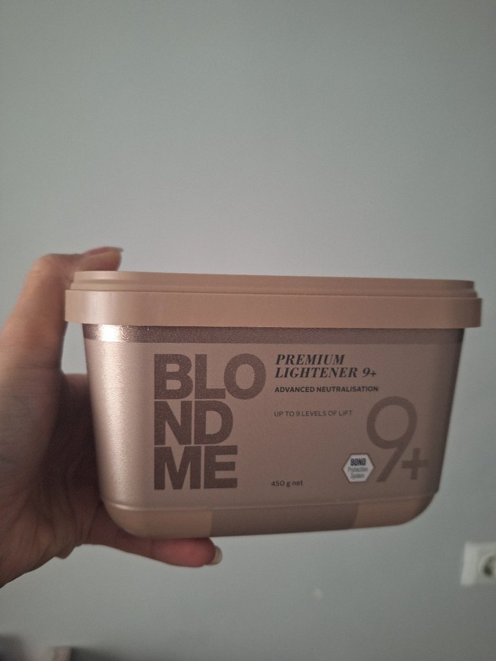 BlondMe Premium Lightener 9+ saç rengini 9 seviyeye kadar açan ve istenmeyen tonları nötralize eden gelişmiş saç açıcıdır. 450g kutuda sunulur. ✨ yarım saç acmada kullandim bir kez