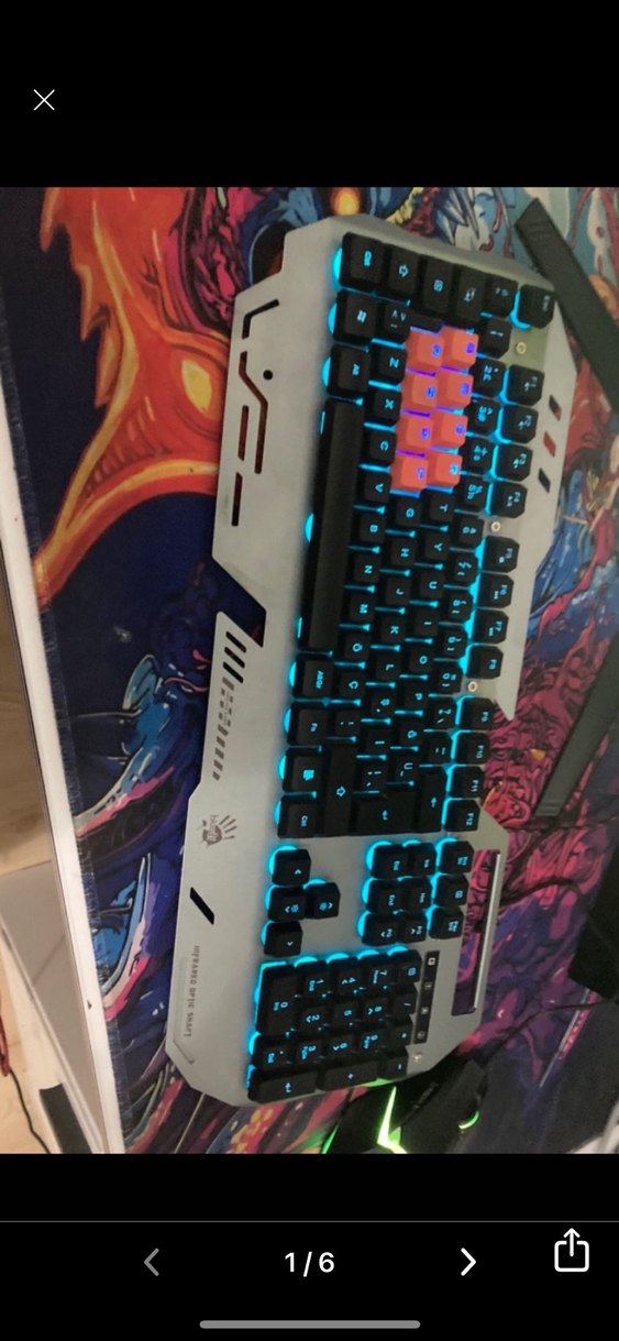 Çok renkli arka aydınlatmaya ve belirgin tuşlara sahip mekanik oyun klavyesi. Koyu taban ve canlı renklerle tasarlanmıştır. OYUNCU klavyesi DAHA FAZLA DETAY için yazınız