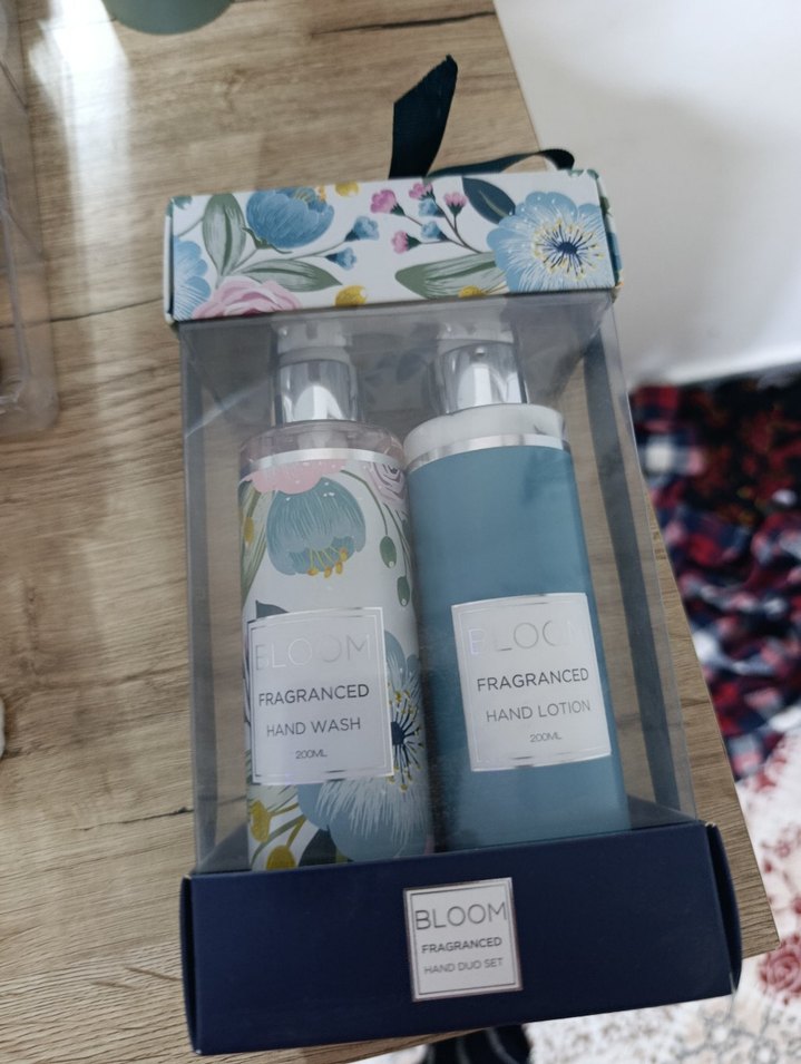Bloom kokulu el yıkama ve el losyonu seti, her biri 200 ml, nazik temizlik ve nemlendirme sağlar.