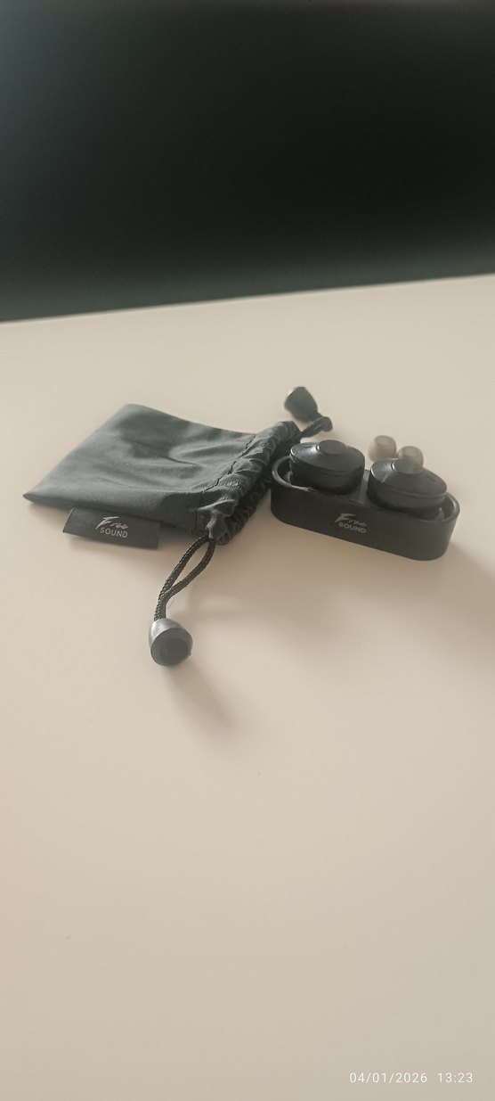 Kompakt şarj kutusu ve yumuşak taşıma çantası ile siyah kablosuz kulak içi kulaklık.
