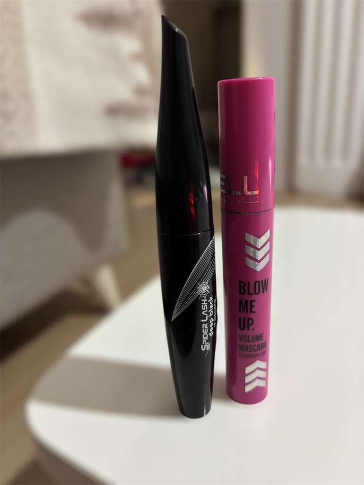 Canlı pembe BLOW maskara hacim verirken, siyah Super Lash maskara kirpikleri belirginleştirir. İki farklı etki sunar.