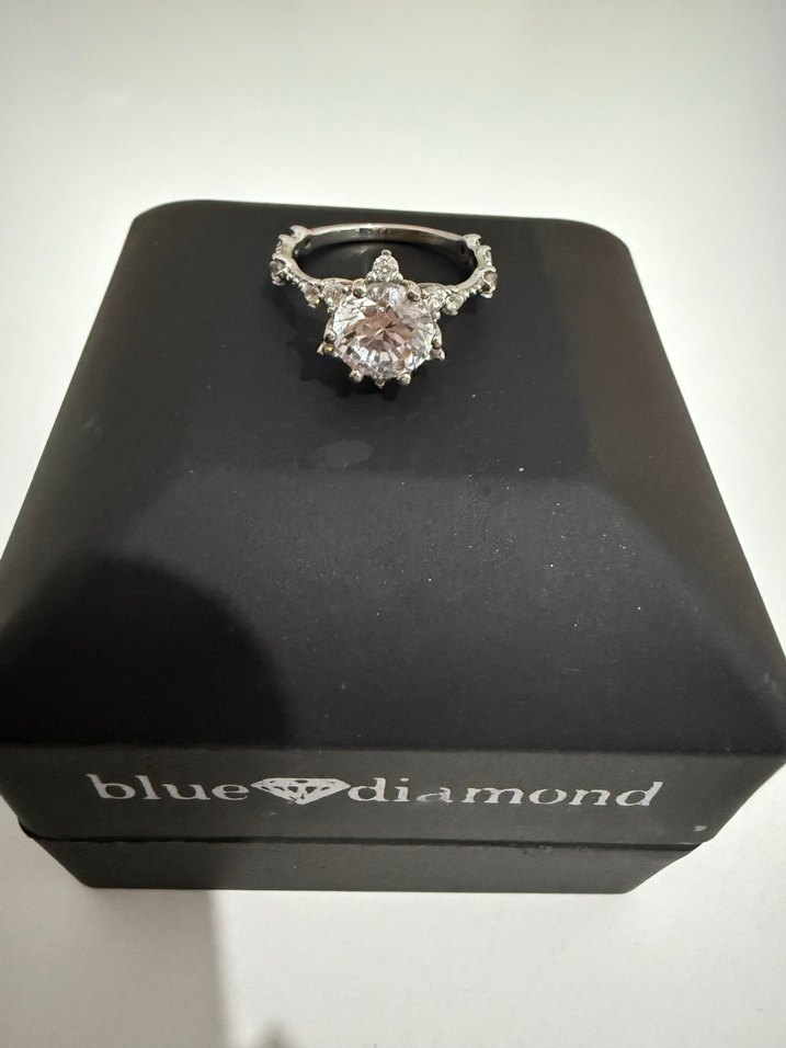 Blue Diamond kadın yüzüğü, parlak merkezi taş ile klasik tasarıma sahiptir, düğünler ve gösterişli anlar için uygundur. 2.50 gr 22 ayar beyaz altın lotus yüzük az kullanıldı yüzük ölçüsü 8 teklife açık