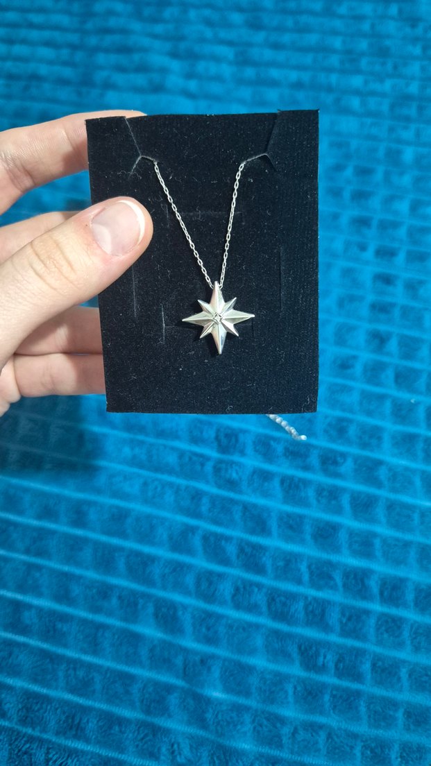 Gümüş pırlanta kuzey yıldızı kolye serfitikasıyla birlikte gönderim yapıcam. kullanılmadı renginde solma yok