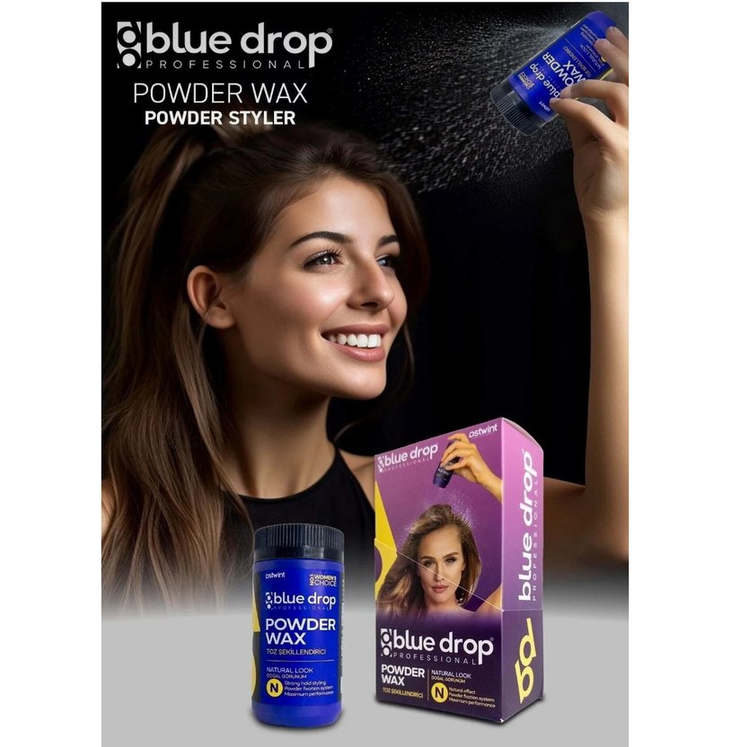 Blue Drop mavi toz wax, doğal görünüm ve şekillendirme tutuşu sağlar. Uygulaması kolay ve saç dokusu kontrolü için uygundur.