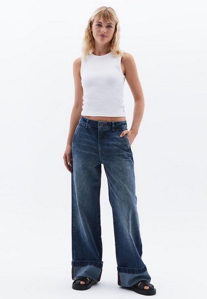Blue Mid Rise Straight Fit Denim (Jeans Pantolon Bol kesim)