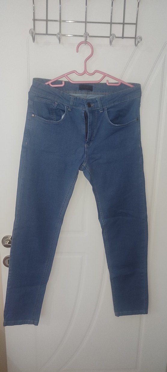 Blue renkte, normal boy ve regular fit denim Erkek jean. Günlük kullanım ve street wear tarzı için uygun, desen içermeyen sade tasarıma sahip. Boy:101 cm-Bel:38 cm-Paça:15 cm Kilo aldığım için satmak durumunda kaldım.İkinci eldir.İade yoktur.