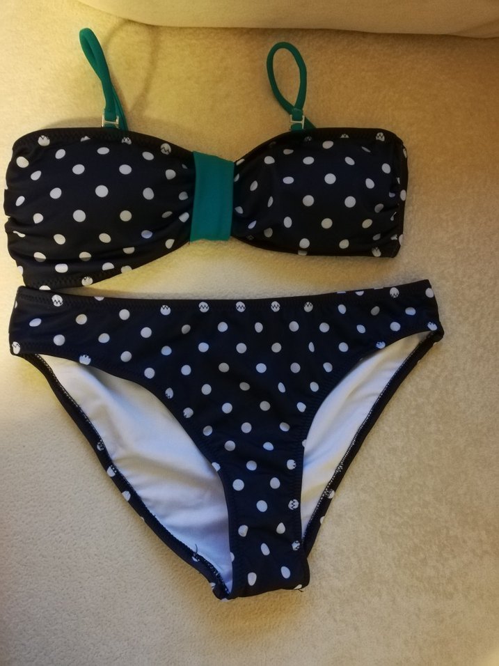 38 beden blue wave marka sıfır alt ve üst takım. Lacivert üzeri beyaz puantiyeli. Üst straplez olarak da kullanılabilir. Askılı da. Yeşil askılar çıkarılabilir. Hijyen sebebiyle. İADE YAPILAMAZ