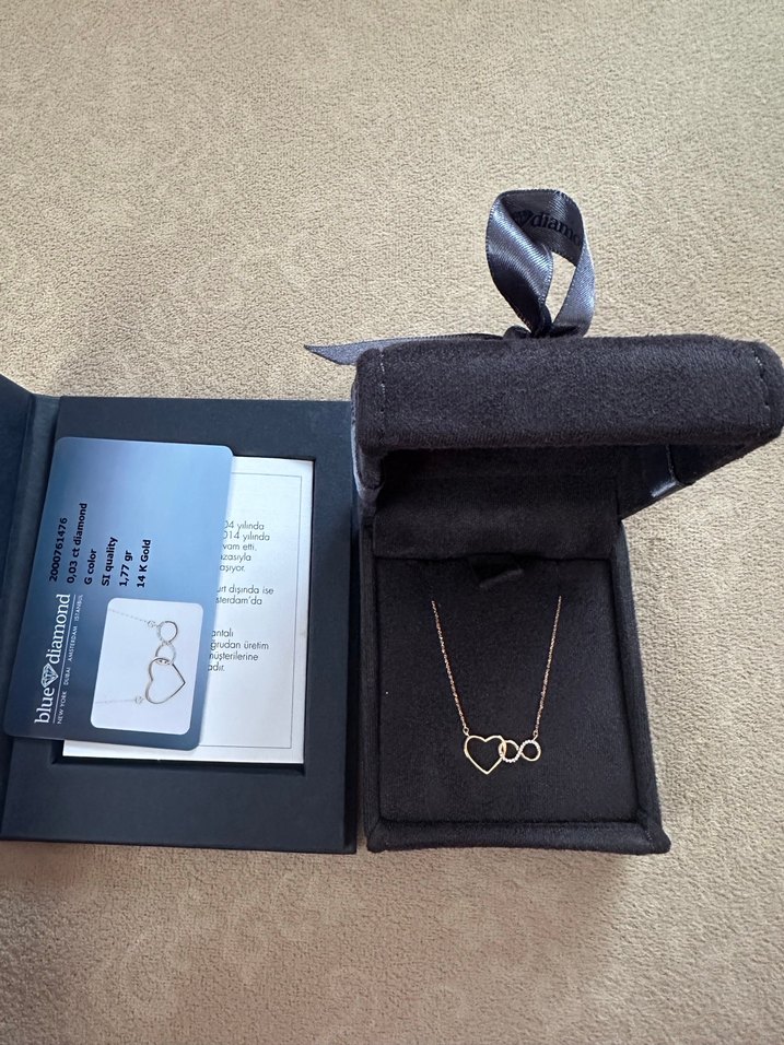 Yeni alındı setifikalı Kolye ucu 19 mm x 8 mm ölçülerindedir. 42 cm altın zincirlidir normal fiyatı 30 binden alındı elden çıksın diye yarı fiyatına satıyorum