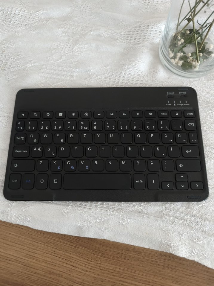 Kompakt ve kablosuz siyah klavye, ince tasarımıyla kolay yazma ve taşınabilirlik sağlar.