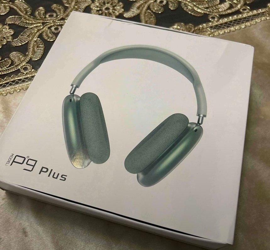 Gri ve haki renklerde, yumuşak pedli ve ayarlanabilir bantlı kablosuz kulaklık .