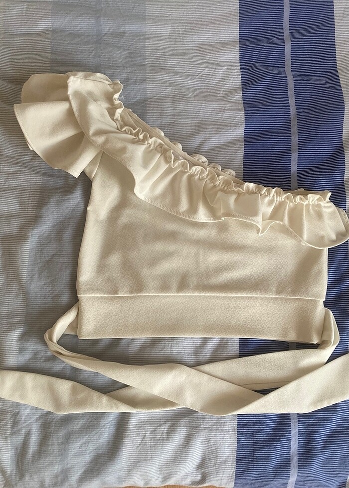 Beyaz tek kol bluz belden bağlanıyor çok şık deforme hasar vs yok bir iki kere giyilmedi bile bedeni bana olmadığı için satıyorum büyük geliyor hasarsız tertemiz