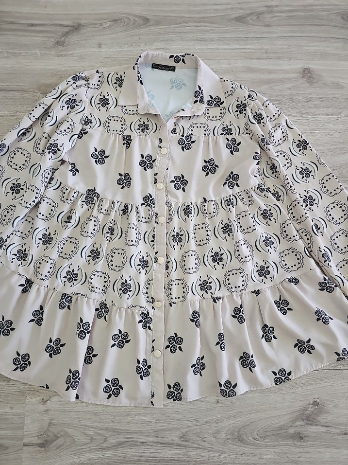 Düğmeli ön kısmı, uzun kollu, yakalı ve bohem desenli bol kesim harika bir model. ürün sıfırdır hediye geldi etiketi yok. kol altı 54 boy 75cm