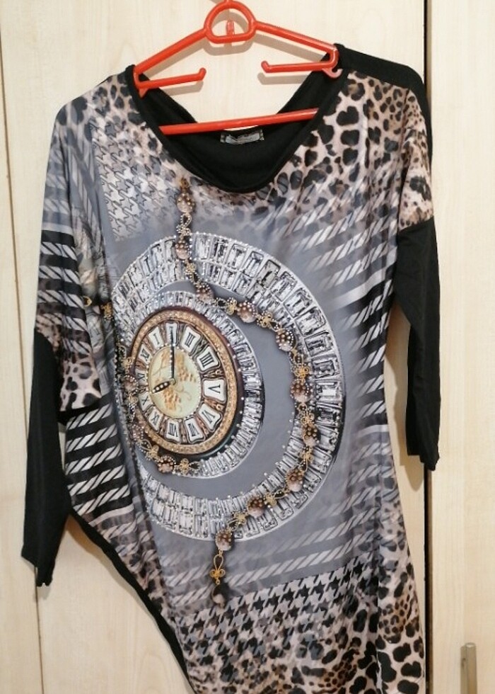 36 38 beden uyumlu yarasa kol tek omuz açık ister bluz ister mini elbise olarak giyilebilir şık taş detay leoparlı tertemizdir terletmeyen kumaş