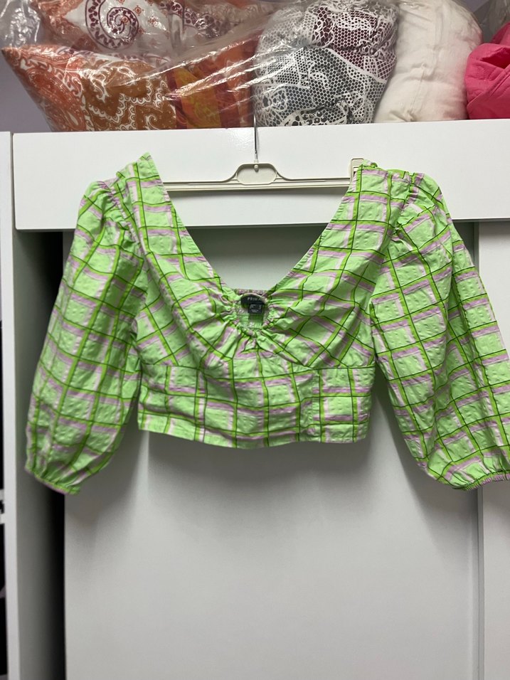 Hic giyilmedi bedeni olmadigi icin ve dekoltesi oldugu icin satiyorum yurtdisindan kuzenim gelirken getirmisti yesil renkli, ve kol detaylı mini bluz. Yumuşak sentetik kumaştan, pastel tonlarda bağlamalı desenli, şık ve sokak modasına uygun. Dekolteli