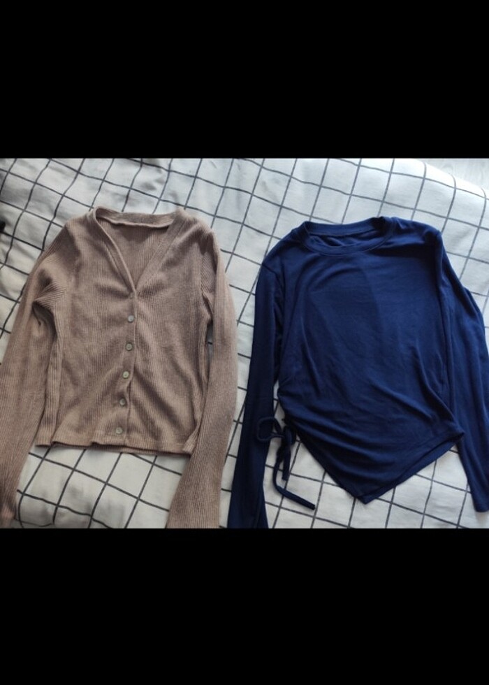 Kahverengi olan h&m den tekli satılmamaktadır lacivert olanın kenarı büzgülüdür m l bedene uyumludur defosu yok
