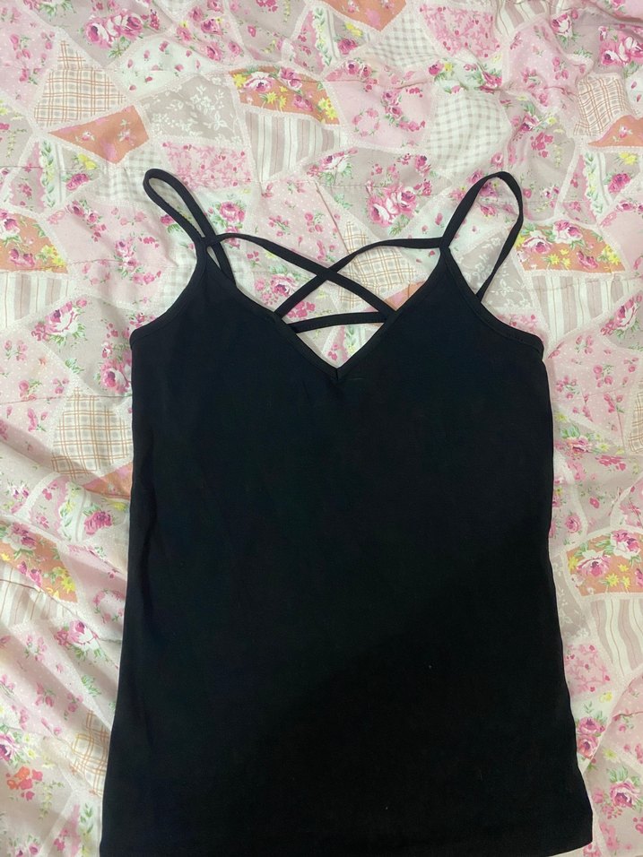 Siyah renkli, ince askılı sentetik kumaştan yapılmış, Günlük kullanıma uygundur.