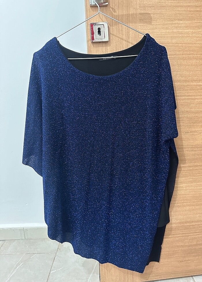 Simli mavi bluz altında astarı vardır esnektir her bedene olur