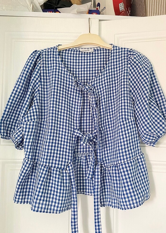 Kare desenli bağlamalı pötükare bluz